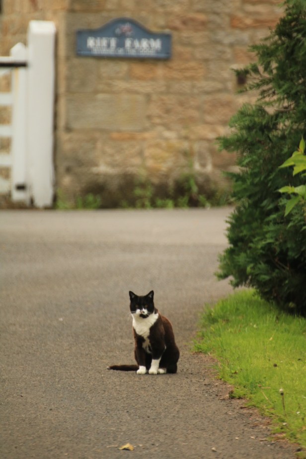A view developed nicely behind me, although the path in front of me tried to put me off by going uphill. But it was fairly gentle incline and I eventually arrived at a place known locally as The Rift, which turned out to be a farm. I was threatened by a cat here. Well, not threatened exactly, but he definitely gave me the evils as I approached. In fact he turned out to be an old softie after I showed him who was boss.