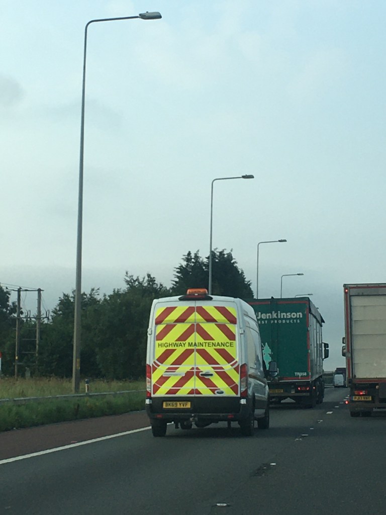 I can’t say that the van driver above was in any way responsible for the accident near Stoke where a lorry had driven into a pillar. But it must’ve been his brand of dangerous driving that contributed to the event. He cut across two lanes and nearly hit us. Avoid him if you ever encounter him.