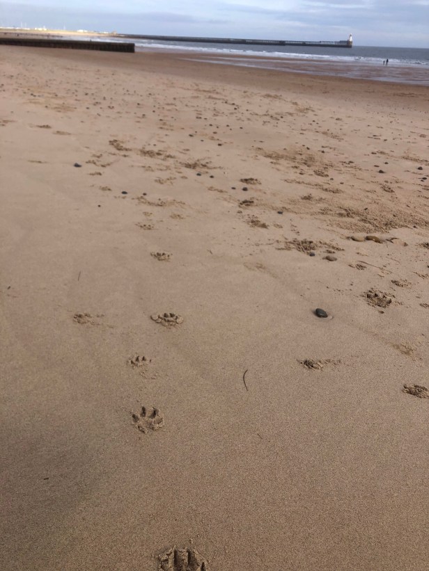 Most of the other visitors to the beach had either a dog or a child with them. I had a rucksack with a book in it. On the sand, the number of paw prints outnumbered the footprints by around fifty to one. I think this was not only because dogs have more feet than us, but they also cover a lot more ground than your average Human.