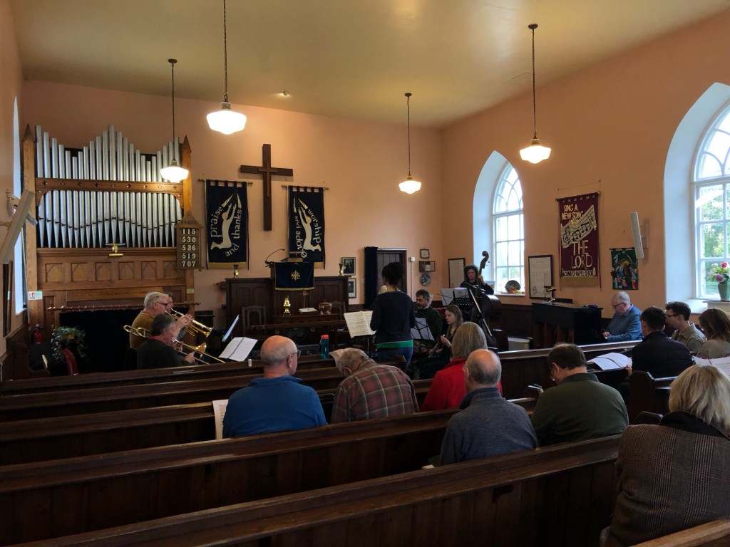 They all arrived just before 1pm in the little Weslyan Chapel in Acomb and we observed them as they calmly removed the weird and wonderful tools of their trade from their protective cases, sat down, and looked at Clair, the Musical Director. There was a collective hush, a bit like the silence before a penalty kick in rugby, and with a wave of her stick – which I am reliably informed is referred to as a baton by those in the know – they produced actual music! I will never understand how that’s achieved but I’m glad they sounded so good.