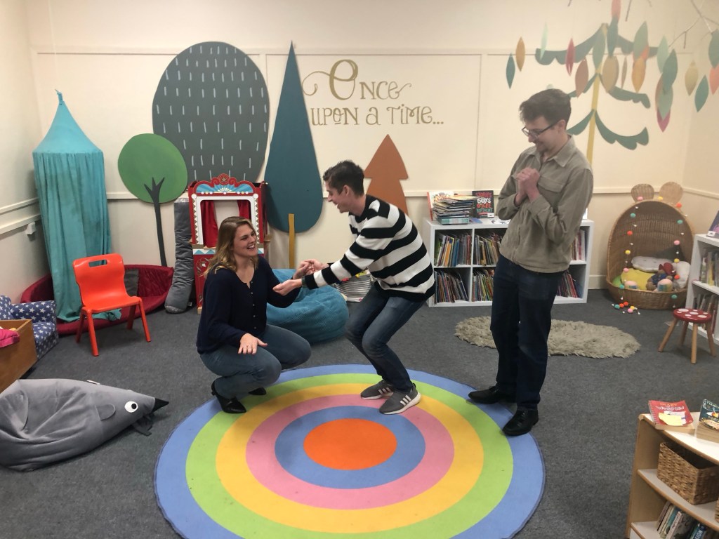 Last night, we were joined by Cornelius Hackl and Barnaby Tucker in a school library. Again, we learned lines, and also found out that a leech has 32 brains (this unrelated fact was gleaned by Dolly in one of her quieter moments from one of the books there). Minnie had brought chilli for those who otherwise would’ve missed their tea.