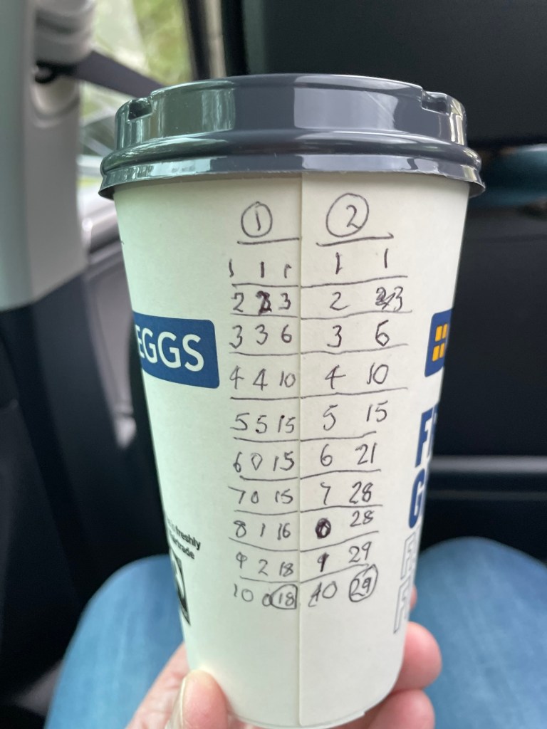 We had trundled down the M6 on our way south when Ten to the Top started on Radio 2. Whenever Rachel and I hear a quiz, it’s the law that we must write down our scores. Not carrying a notepad in the car, we made good use of a recently acquired and still warm but empty Greggs coffee cup to record our magnificent 18 on the first round and 29 on the second. That’s more than I scored when I was actually on the quiz back in February when I notched up 9 points, which incidentally still won me an Alexa smart speaker. Even now it sits proudly in our living room, listening to our every word…maybe.