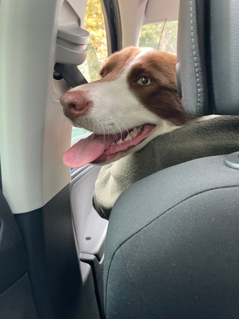 The next attempt was abruptly halted after about four miles at a roundabout when a dog ran out in front of us, completely unaware of the approaching traffic. It was lost in its pursuit of whatever it is that loose dogs are in pursuit of. Bones? Rabbits? Cats? We may never know, because after we stopped and David had gathered her up, she refused to divulge why she was there or what she was doing.